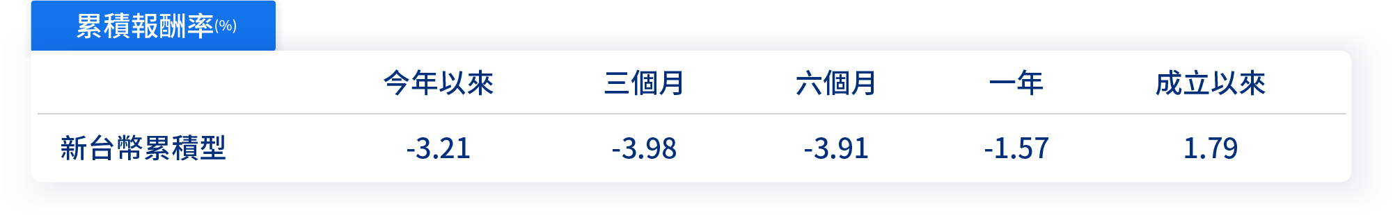| 配息月份 | 每單位分配金額 | 配息率 | 年化配息率(%) | 當期報酬率(%) |